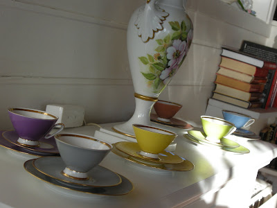 Dette nydelige mokka settet er det ikke lenge siden ble kjøpt men boksamlinga er blitt til over tid! Det har blitt med noen poser bøker hjem fra Bruktbobutikken ! Herlig og artig se de i sitt rette elemet.